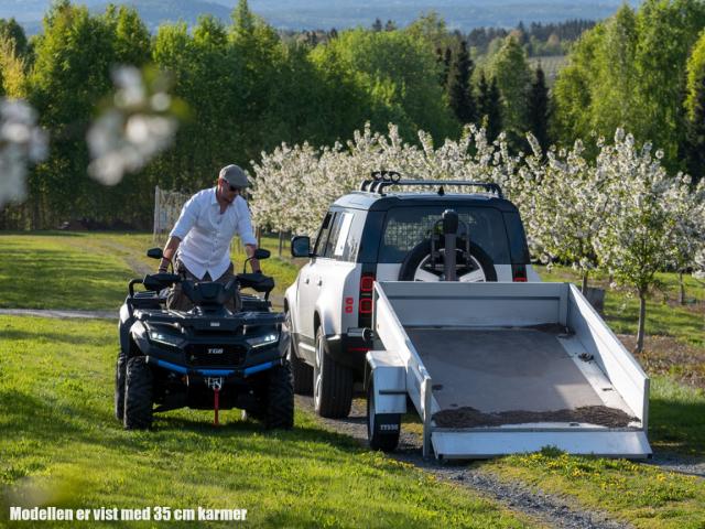 Oppdag Tysse 6220, en tilhenger som kombinerer brukervennlighet og robust design med smarte løsninger som gjør jobben enklere og mer effektiv. Tilhengeren er ideell for både gjør-det-selv-prosjekter, fritidsaktiviteter og proffbrukere. Med stort kassevolum, høy nyttelast og tippfunksjon kan du enkelt kjøre gressklipperen, hagemaskinen eller ATV-en rett opp på lasteplanet, vippe opp tilhengeren for å tømme grus eller jord direkte på ønsket sted, og frakte hageavfall eller flyttelass. Den forsterkede bakkarmen gir ekstra stabilitet og brukervennlighet, uansett oppgave.